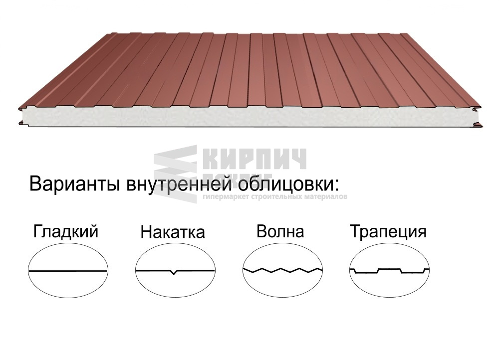 В интернет-магазине "Кирпич Вокруг" Вы можете купить Стеновая трёхслойная сэндвич-панель трапеция 50мм 1190мм с видимым креплением пенополиизоцианурат Полиэстер Металл Профиль в Орехово-Зуево, а наши специалисты готовы вам помочь с выбором по адресу: , или оказать консультацию по телефону: .